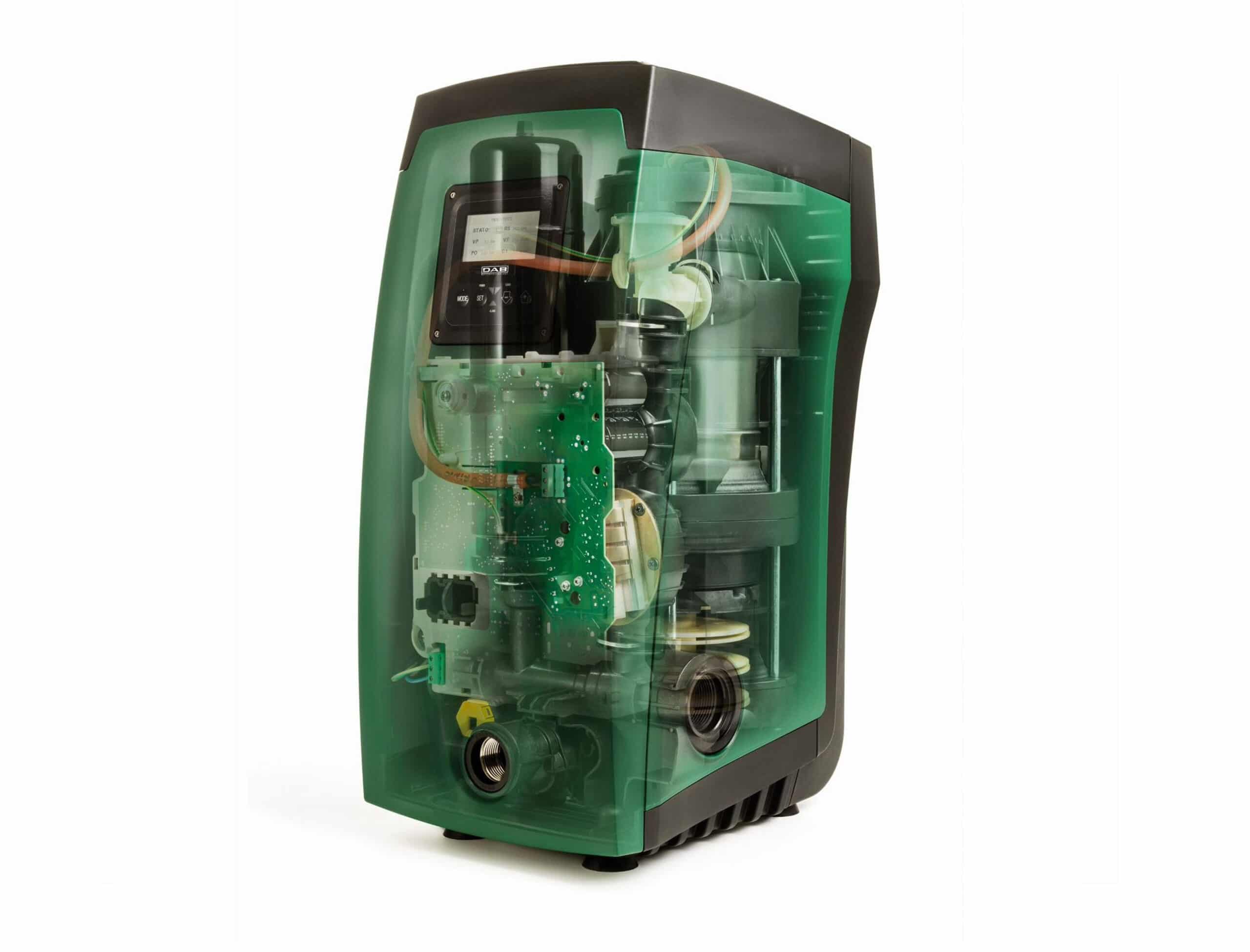 De DAB Easybox is fluisterstil met maar 45 dB bij een gemiddelde capaciteit. Door de frequentieregeling geen verspilling van water en energie, ook zorgt het voor een constante waterdruk.  De noodzakelijke signalen worden naar de printplaat gestuurd voor een juiste besturing door de ingebouwde temperatuursensor en flowsensor. Op de hoge resolutie LCD display van 70 x 40 mm kun je eenvoudig en snel de instellingen aanpassen. Voor de watergekoelde motor is geen externe koeling nodig en het kan in een kleine afgesloten ruimte worden geplaatst. De terugslagklep is makkelijk te verwijderen voor onderhoud en werkt goed in zowel een horizontale als verticale installatie. De geïntegreerde expansievat heeft een capaciteit van 2 liter en is gecertificeerd voor drinkwater met 5 jaar garantie en onderhoudsvrij.