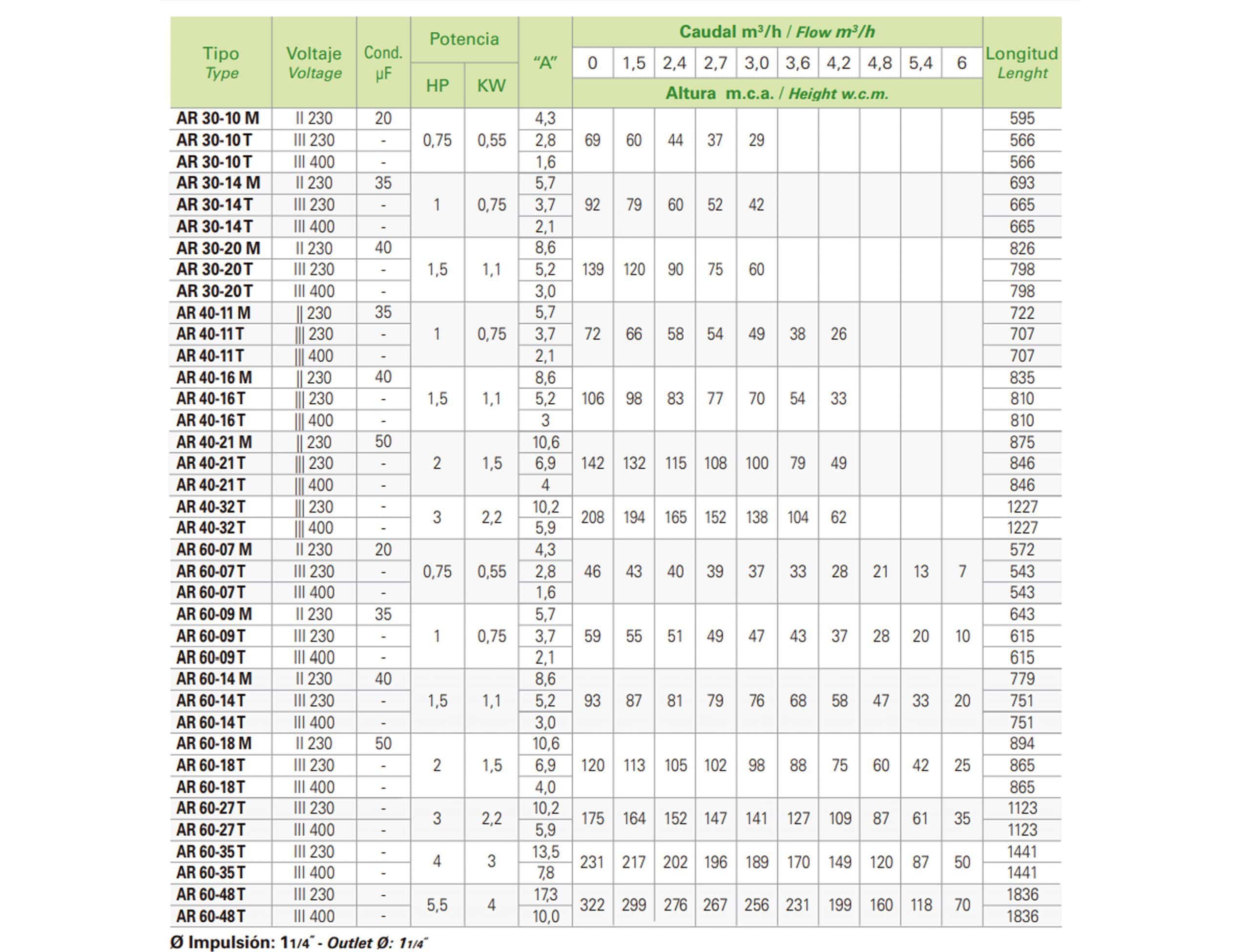 Onderwaterpomp Saci AR 60-14 T 380, 1,5HP, 1,1kW
